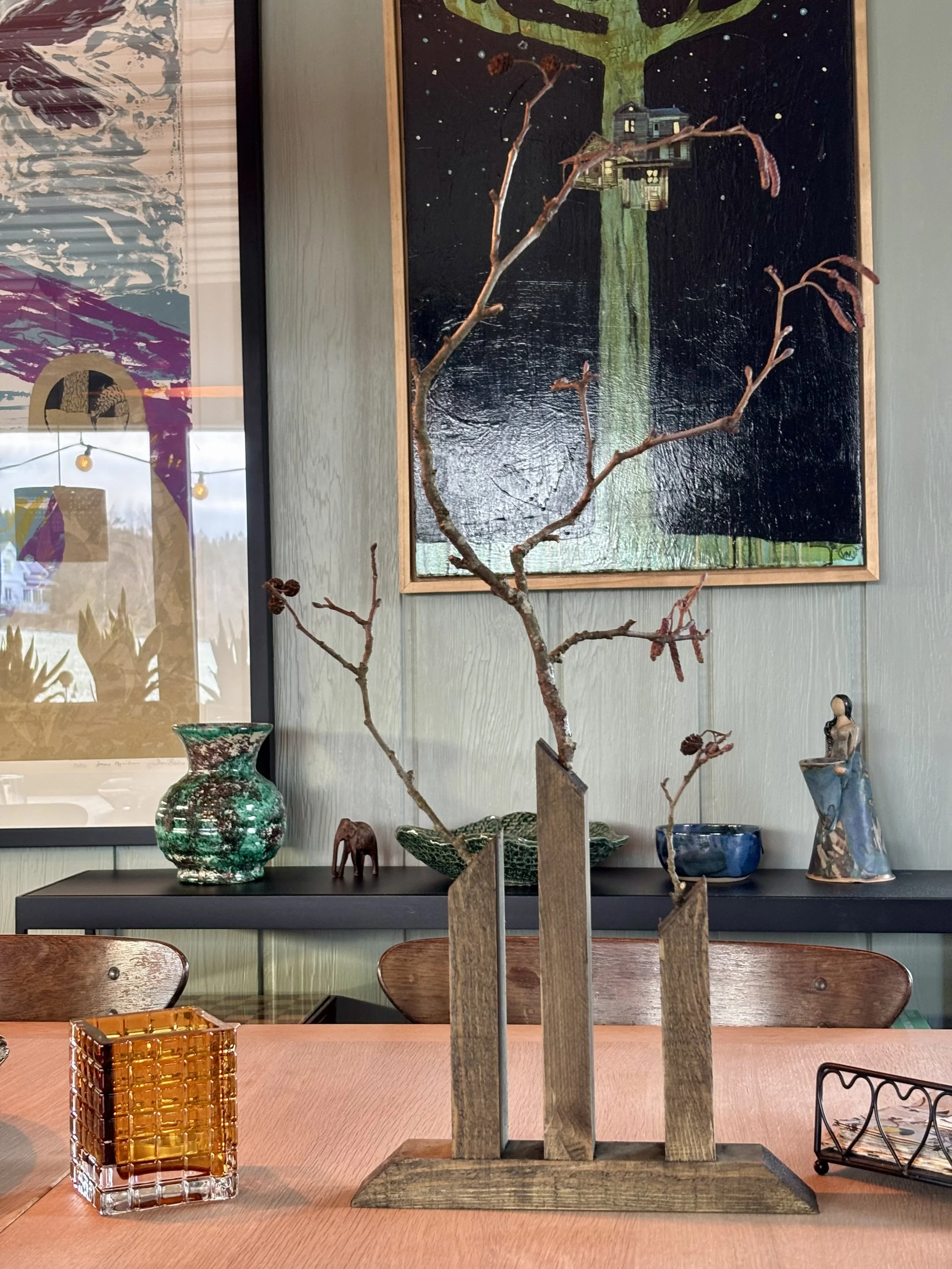 Det blir alltid noe til overs - kapp, rester og annet som ikke var bra nok der og da. I hobbyverkstedet vårt i Torsnes lager vi enkle pyntegjenstander som bærer i seg sporene av å ha blitt til overs en gang. Ta kontakt om du ønsker å bestille eller komme innom låveutsalget vårt i Holmsdalen 16. Vi har juletrær, kranser, fuglematere, bordpynt og annet som hør og bør seg i jula.